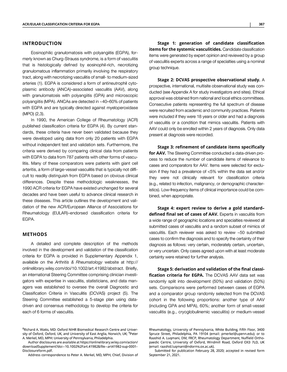 2022 ACR/EULAR 嗜酸性肉芽腫性多血管炎的分類標準