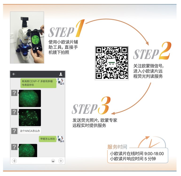 小歐讀片*:歐蒙技術(shù)團隊傾情打造云服務(wù)端小歐讀片,用戶只需通過手機拍照的形式向平臺發(fā)送圖片,即可獲得歐蒙專家團隊的及時服務(wù),該平臺提供專業(yè)化、標(biāo)準化的熒光核型疑難片遠程判讀服務(wù),隨時隨地解決客戶難題。