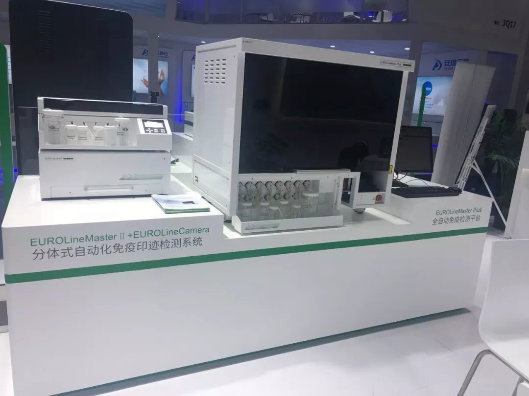 2019年,EUROLINE自動化平臺又有一名新成員榮耀加入——EUROLineMaster II(全自動免疫印跡儀)。它是在原經典印跡產品EUROBlotMaster II (歐蒙第二代全自動免疫印跡儀)基礎上的全新升級產品,不僅外觀設計精致小巧,更加節省空間,還具有高安全性、避免交叉污染、精確分液等優勢特點。EUROLineMaster II與EUROLineCamera配套組成分體式自動化免疫印跡檢測系統,可作為集成式工作站實現從實驗、風干、成像到結果判讀的全覆蓋,單次檢測量50人份,更符合基層醫療機構使用場景。
