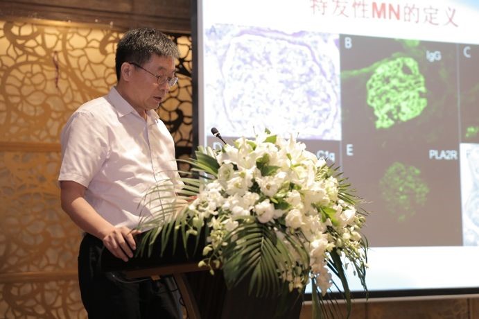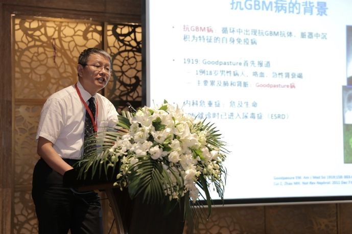 論壇首先由兩位我國權(quán)威腎臟病學(xué)專家進(jìn)行了相關(guān)疾病的學(xué)術(shù)報(bào)告分享。趙明輝教授以抗腎小球基底膜(GBM)病的進(jìn)展為題,從抗GBM病四類表型切入,系統(tǒng)闡述了課題組在抗GBM病病因和致病機(jī)制上最新研究進(jìn)展和以分子模擬理論為基礎(chǔ)尋找引起抗GBM病潛在致病微生物的研究成果。趙教授的報(bào)告受到了與會(huì)專家的高度評價(jià),并引發(fā)了現(xiàn)場同仁的熱烈討論,對相關(guān)疾病研究起到積極啟迪與推動(dòng)作用。隨后,邢昌贏教授進(jìn)行了血清標(biāo)志物在膜性腎病診治中的研究進(jìn)展的學(xué)術(shù)報(bào)告。邢教授綜合論述了目前對膜性腎病發(fā)病機(jī)制的研究進(jìn)展,結(jié)合實(shí)際情況分析了標(biāo)志物在臨床應(yīng)用中的問題和意義,并從實(shí)際病例出發(fā)強(qiáng)調(diào)了部分膜性腎病與癌癥的相關(guān)性,引起在場專家與同仁的高度重視。