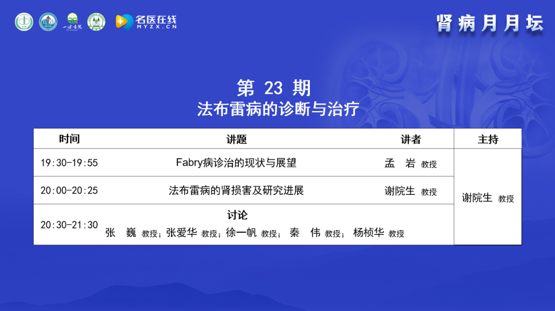 今天的主題是法布雷病的診斷與治療,邀請了在該領(lǐng)域有很深造詣的專家進(jìn)行交流。