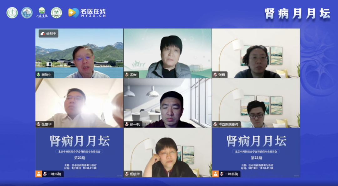 謝教授代表北京中西醫(yī)結(jié)合學(xué)會腎臟病專業(yè)委員會、北京中西醫(yī)結(jié)合腎臟疑難病會診中心以及一味書院對各位專家、各位同仁及各位朋友參加第23期“腎病月月壇”表示熱烈的歡迎和衷心的感謝,同時(shí)感謝名醫(yī)在線的轉(zhuǎn)播。