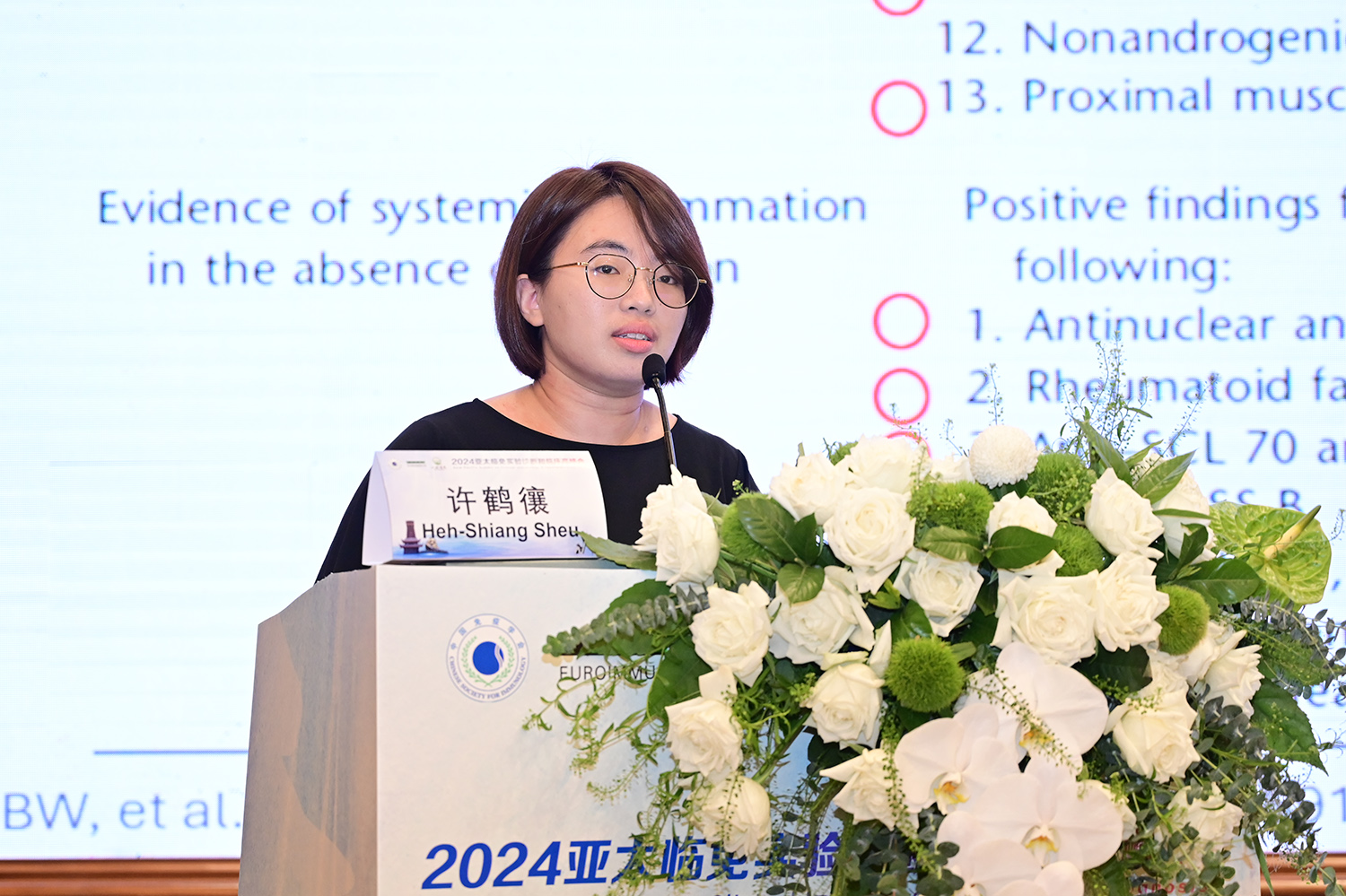 來(lái)自臺(tái)灣的許鶴忀教授首先解讀了2015年歐洲呼吸學(xué)會(huì)(ERS)/美國(guó)胸科學(xué)會(huì)(ATS)工作組提出的基于“自身免疫特征的間質(zhì)性肺炎”(IPAF)這一術(shù)語(yǔ)的疾病背景,明確指出IPAF分類旨在創(chuàng)建一個(gè)更加標(biāo)準(zhǔn)化、更全面的框架以及其背后歷經(jīng)的一系列疾病概念的迭代更新,如未分化結(jié)締組織病(UCTD)-ILD、肺部顯性CTD、自身免疫特征 ILD等,為我們深入理解 IPAF 奠定了理論基礎(chǔ)。IPAF 的名稱應(yīng)用于識(shí)別 IIP 患者和提示具有CTD特征,但不是確定的CTD。基于國(guó)際多個(gè)IPAF回顧性隊(duì)列研究分析顯示,關(guān)節(jié)炎、雷諾現(xiàn)象和“技工手”,是 IPAF 患者最常見的臨床特征。在血清學(xué)領(lǐng)域,ANA(抗核抗體)是最常見的抗體。在形態(tài)學(xué)上,NSIP (非特異性間質(zhì)性肺炎) 是主要模式,其次是 OP (機(jī)化性肺炎)。在預(yù)后方面,IPAF 患者的預(yù)后通常比 IPF 患者好,但與 CTD-ILD患者相比,預(yù)后更差。研究顯示,IPAF發(fā)展為系統(tǒng)性自身免疫性風(fēng)濕病的風(fēng)險(xiǎn)較非IPAF人群高14倍左右,強(qiáng)調(diào)了對(duì) IPAF 患者進(jìn)行長(zhǎng)期隨訪的重要性,尤其警惕符合 IPAF 血清學(xué)領(lǐng)域標(biāo)準(zhǔn)的女性患者。最近,基于意大利的一項(xiàng)研究,提出了一種稱為“具有自身免疫特征的尋常型間質(zhì)性肺炎”的分類 (UIPAF),引起了學(xué)術(shù)界廣泛關(guān)注,也從另一個(gè)維度反應(yīng)了此類疾病的異質(zhì)性、復(fù)雜性及目前分類標(biāo)準(zhǔn)的一些局限性。最后,許鶴忀教授分享了臺(tái)中榮民總醫(yī)院ILD多學(xué)科團(tuán)隊(duì)組成,以及篩查、診斷和全程管理此類疾病的臨床路徑,為亞太地區(qū)與會(huì)代表提供了寶貴的臨床經(jīng)驗(yàn)和實(shí)踐指導(dǎo)。