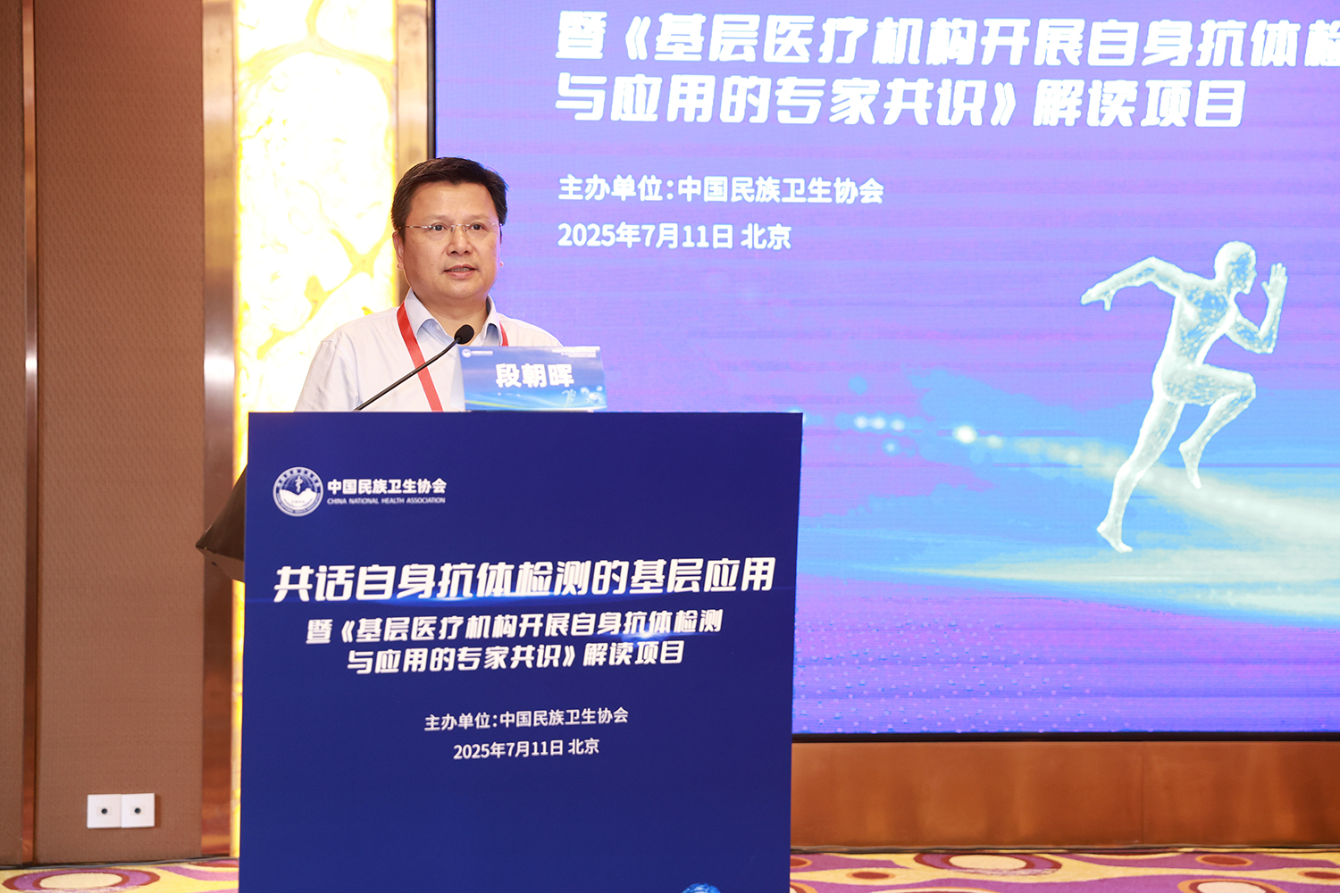 中國(guó)民族衛(wèi)生協(xié)會(huì)主辦的“共話自身抗體檢測(cè)的基層應(yīng)用暨《基層醫(yī)療機(jī)構(gòu)開(kāi)展自身抗體檢測(cè)與應(yīng)用的專家共識(shí)》發(fā)布會(huì)”,于2025年7月11日在北京·馬哥孛羅酒店隆重舉行。