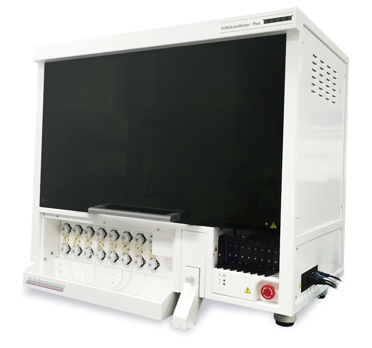 EUROLineMaster Plus-A全自動(dòng)免疫印跡檢測(cè)系統(tǒng)采用歐蒙最新的高通量多參數(shù)免疫檢測(cè)技術(shù),是目前使用更先進(jìn)、應(yīng)用更成熟的一個(gè)多指標(biāo)檢測(cè)技術(shù)平臺(tái)。儀器具備16個(gè)試劑通道,可在一次檢測(cè)運(yùn)行中,組合自身免疫、過(guò)敏原和感染診斷領(lǐng)域的檢測(cè)。可實(shí)現(xiàn)從加樣到結(jié)果輸出的全自動(dòng)操作及全流程管理,實(shí)現(xiàn)從樣本識(shí)別、樣本稀釋、所有孵育及清洗過(guò)程,到自動(dòng)成像、圖像分析與處理的全自動(dòng)操作,最終出具可自定義的檢測(cè)報(bào)告,可真正實(shí)現(xiàn)無(wú)人值守。